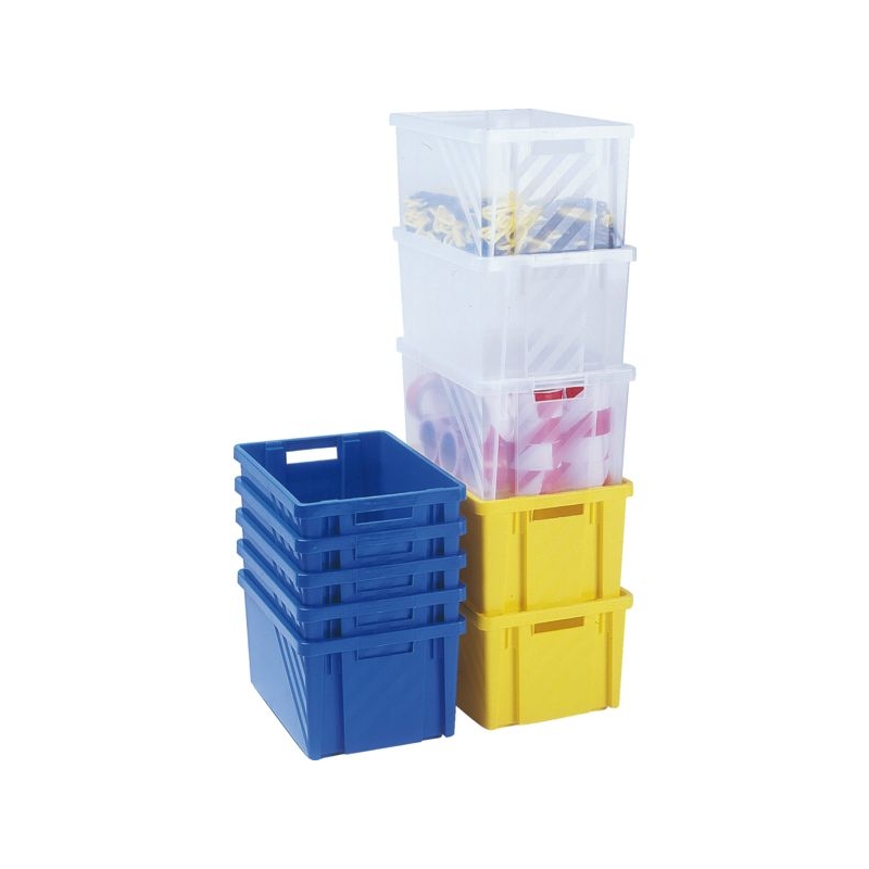 En polypropylène avec poignées ouvertes pour une manutention efficace et facile. Utilisation polyvalente de rangement, manutention, préparation de commande et stockage. Capacité de charge : 30 l/489 kg L x l x H : 470 x 346 x 255 mm Poids : 0,890 kg