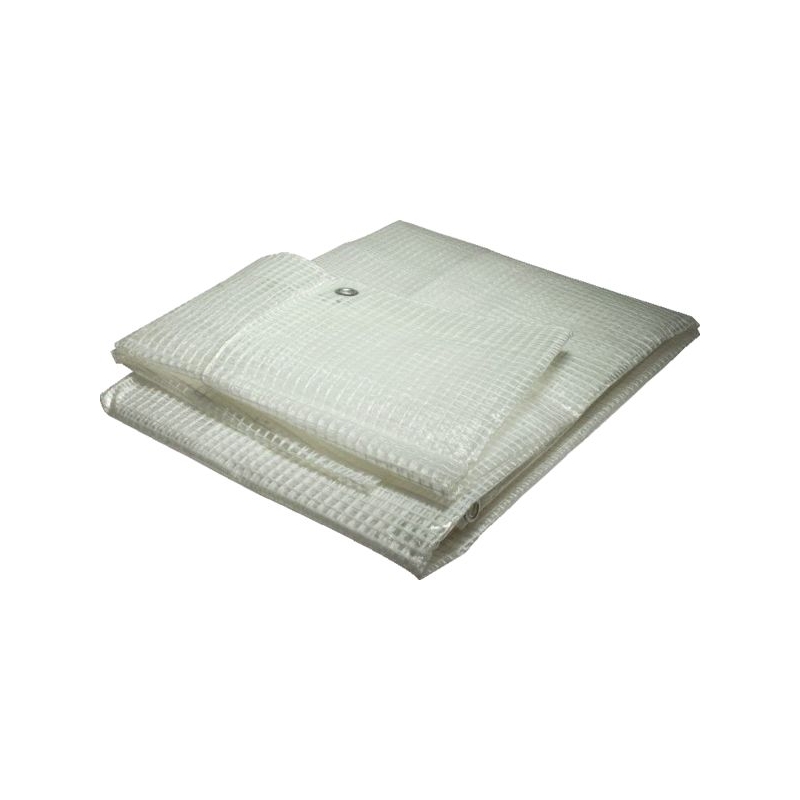 100 % vierge polyéthylène, film enduit avec trame blanche laissant passer la lumière. Grande résistante aux UV. Bande de renfort sur pourtour avec œillets en aluminium tous les 1 m. Dimensions réelles ± 5%.