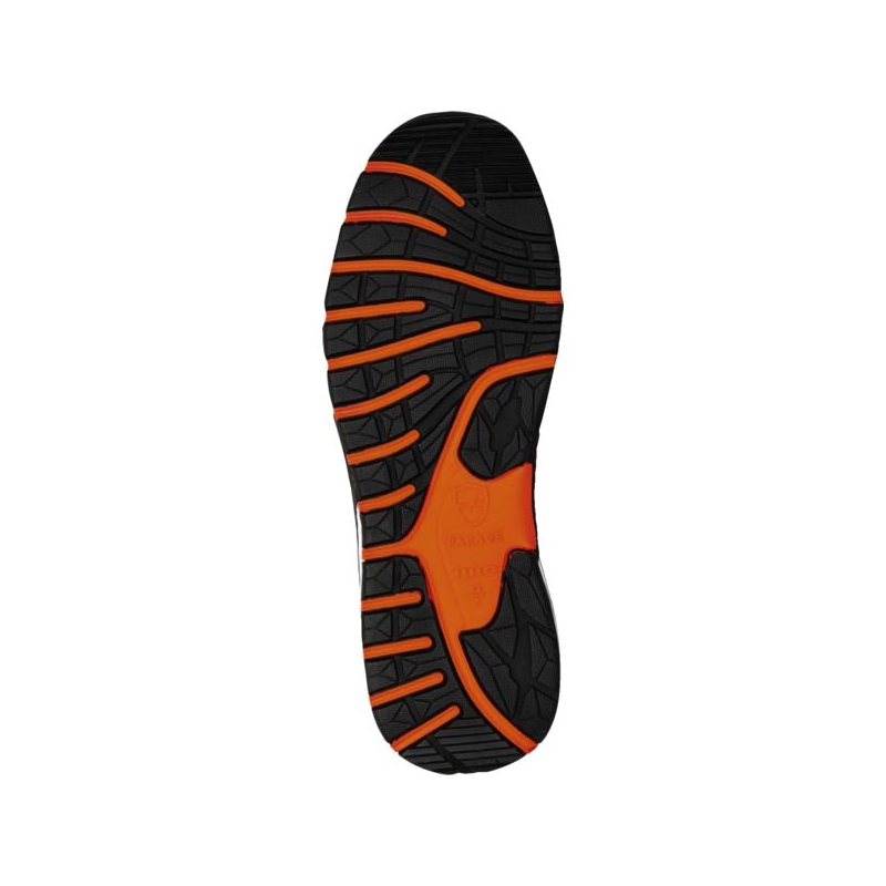 Tige en microfibre et croute de cuir, hydrofuge. Doublure en textile. Première de propreté anatomique et amovible en maille sur mousse PU. Semelle d'usure en caoutchouc / EVA. Semelle antiperforation textile. Embout de sécurité en composite. Poids : 588 g Coloris : noir/orange Pointures : 39 au 48 Norme : CE Cat II - EN ISO 20345 - S3 HRO SRC