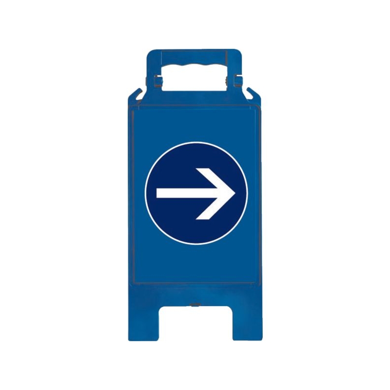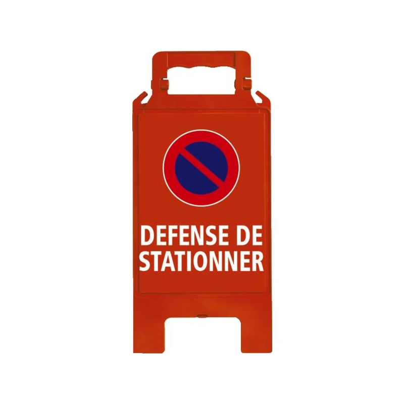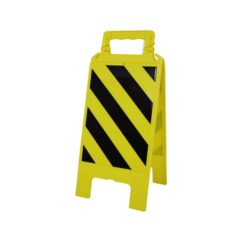 En polypropylène avec renforts de maintien. Utilisation temporaire intérieure et extérieure. Poignée ergonomique, large surface d'impression. Clip de maintien en position ouverte, grande stabilité. Crochets pour chaîne de signalisation. H x l : 600 x 275 mm Épaisseur (plié) : 23 mm