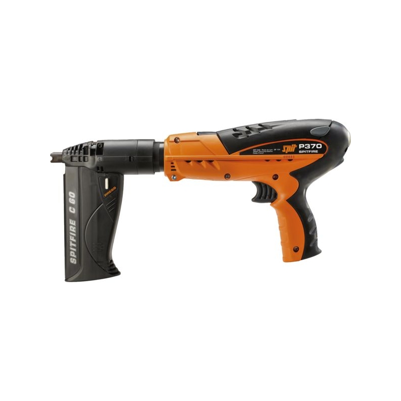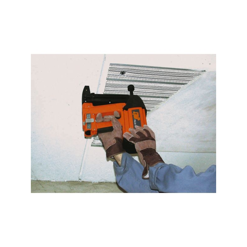 Cloueur à poudre pour béton et acier. Fixation de rails, gaines au sol, posibanches. Rapidité de tirs grâce à la remontée automatique de la masselotte: 1 tir/seconde. Puissance : 360 J Capacité chargeur : 10 clous Effort de mise en appui : 14 - 15 kg Poids avec chargeur : 3,200 kg