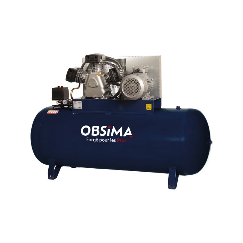 Groupe fonte, tricylindre en W, monoétagé. Composants longue durée (clapets haut rendement, triple segmentation, cylindres en fonte, culasses en aluminium, 3 filtres à air). Sortie directe raccord rapide. Manomètre 16 bar, contacteur manométrique, clapet anti-retour, soupape de sécurité CE, robinet de purge. Alimentation : 400 V triphasée Puissance : 5,5 cv Réservoir : 270 l Débit aspiré : 35 m³/h Débit restitué : 23,6 m³/h Pression maxi. : 10 bar Vitesse de rotation : 1190 tr/mn Poids : 175 kg Dimensions : 105 x 55 x 165 cm