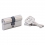 Cylindre laiton à profil européen. 5 goupilles. Panneton anti arrachement. Livré avec 3 clés. Conforme à la norme EN 1303. Finition : laiton nickelé Conditionnement : boite