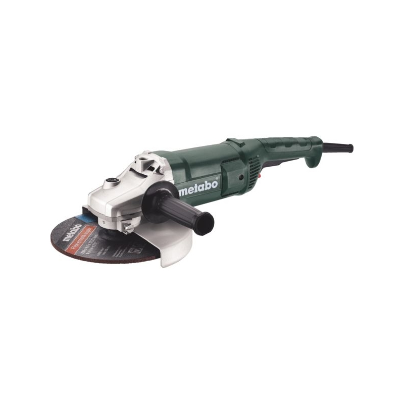 Pour disque Ø 230 mm. Interrupteur homme-mort . Puissance : 2200 W Vitesse : 6600 tr/mn Poids : 5,200 kg Livrée avec capot de protection, flasque d'appui, clé à ergots, écrou à 2 trous frontaux et poignée latérale.