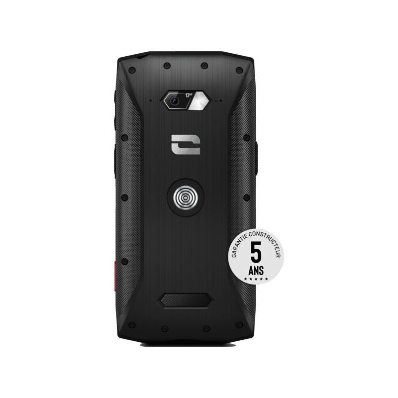 Étanche, résistant et endurant. Double NanoSIM ou NanoSIM+ Micro SD. (extension 512 Go). Haut parleur 100 décibels. Système : Androïd AER. Mémoire de stockage : 3 Go RAM Mémoire : 32 Go. Écran : 4.95 pouces. Réseau : 4G+, WIFI, Bluetooth, NFC. Photos : 13 et 2 mégapixels. Batterie : 4000 mAh. DAS : tête 1.54W/kg, corps 0.78 W/kg, membres 1.83 W/kg. Indice de réparabilité 8.8/10 + pièces détachées disponibles 10 ans Le prix de vente HT comprend 10 € de SORECOP.