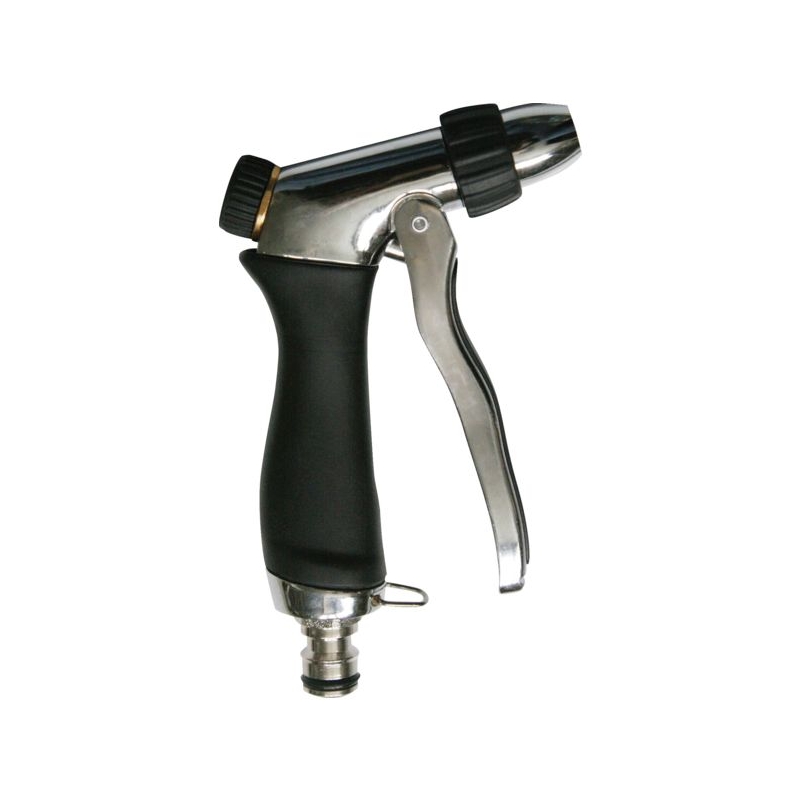 Raccord rapide en laiton nickelé. Régulateur de débit. Gâchette marche/arrêt.