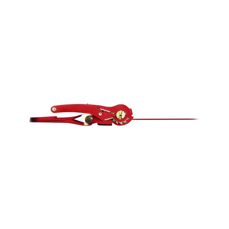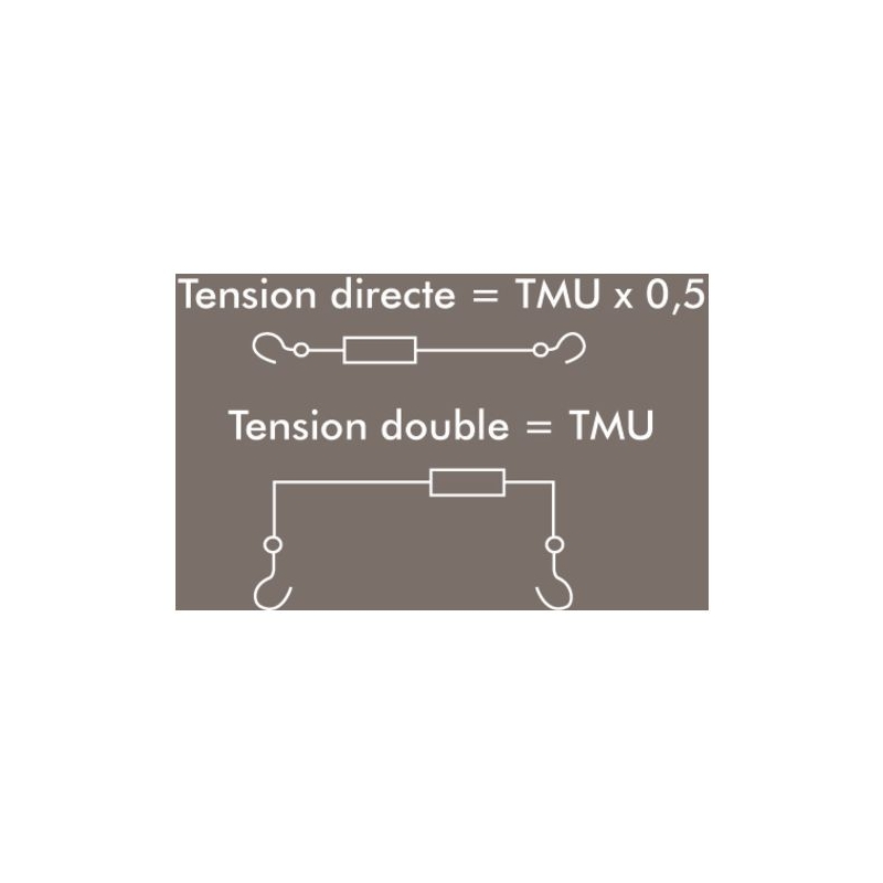 Arrimage 2 parties, équipé d'un accumulateur de tension en polyuréthane et d'un tendeur à détente progressive. Ce système breveté permet de rester constamment en tension. Il réduit la perte de tension de sangle liée aux aléas de la route. Deux passants polyuréthane protègent la marchandise et la sangle de l'abrasion. TMU : 2000 kg Longueur/largeur : 9 m/50 mm Norme : EN 12195-2