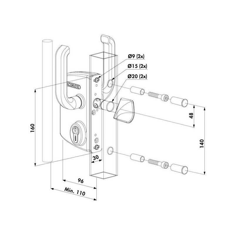 Coffre en aluminium thermolaqué. Mécanisme et pêne papillon en acier inoxydable. Paire de poignées en aluminium renforcé. Gâche autoréglable. 3 trous, fixation par 2 vis BTR. Livrée avec cylindre + 3 clés. Gâche à commander séparément code 53910. Dimensions coffre : 96 x 160 mm Finition : vert Conditionnement : boite