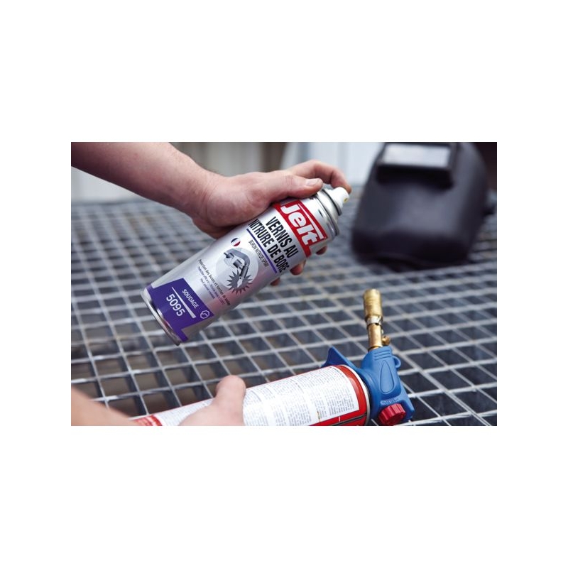 Permet de déposer un film lisse blanc à base de nitrure de bore de haute pureté. Protège les buses et torches de soudage contre les projections de soudure et grattons. Résiste à des températures élevées (1100°C en pointe). S’applique très facilement sur le support à protéger. Assure une lubrification à haute température en diminuant les frictions. Utilisé comme agent de démoulage dans certaines applications (métallurgie, industrie de métallisation, moule d’injection plastique…). Aérosol : 400 ml net